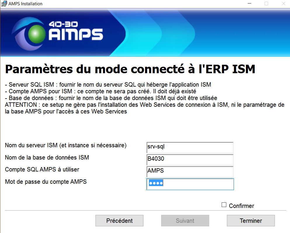 - Le Setup n'installe pas non plus les Web Services de connexion entre AMPS et ISM, indispensables également au mode connecté.