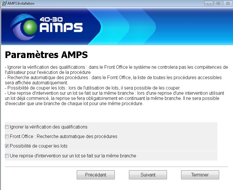 Ecran Paramètres AMPS
