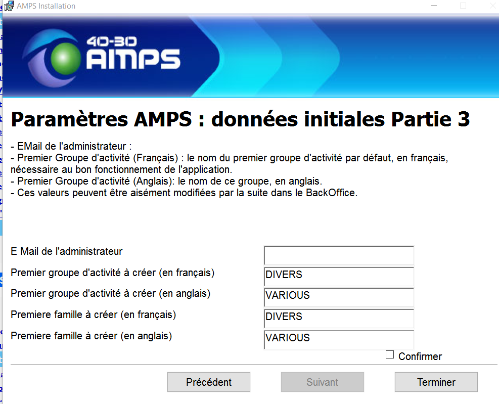 Ecran paramètres données initiales bis