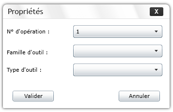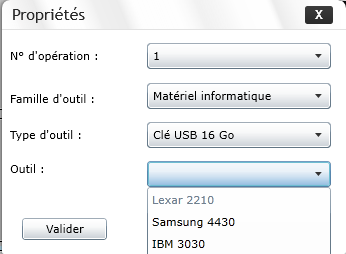 • 3 niveaux hiérarchiques sont disponibles pour le choix Famille / Instrument-Type d'outil / Outil